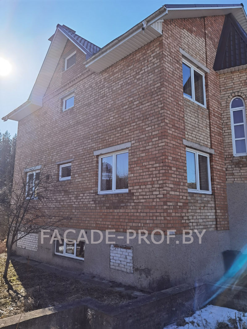 Утепление фасада дома пенопластом – отличное решение для частных домов. Компания Фасад-проф имеет большой опыт в этом направлении. Стены строения по технологии утеплены пенопластом снаружи. Это также удобно для выравнивания поверхности и подготовки фасада для отделки. В данном случае, после утепления фасада нашими специалистами, была проведена работа по отделке и преображению кирпичного частного дома в красивый и стильный коттедж. Более того, пенопласт — экологичный и пожаробезопасный материал, сохранит тепло дома в любой мороз. Кроме этого, пенопласт – достаточно доступный материал, что позволило существенно сэкономить бюджет заказчика.